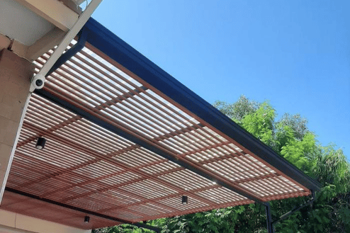 Kelebihan utama dari kanopi Solarflat adalah kemampuannya menahan panas tanpa menghalangi cahaya alami. Material ini memiliki lapisan pelindung UV di kedua sisinya, sehingga cahaya yang masuk tetap lembut dan tidak menyilaukan. Inilah yang membuat area di bawahnya terasa terang, nyaman, dan tetap sejuk.