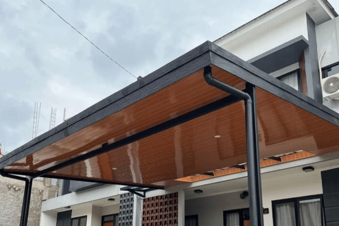 Pasang Kanopi Alderon Minimalis – Jika Anda mendambakan suasana teduh yang nyaman, bebas dari panas menyengat dan suara bising hujan yang memekakkan telinga, kanopi Alderon adalah pilihan terbaik. Berbeda dengan atap metal atau spandek yang berisik, Alderon dirancang untuk menciptakan ketenangan. Bahannya terbuat dari uPVC (Unplasticized Polyvinyl Chloride) premium yang dirancang dengan struktur dinding ganda berongga, atau yang dikenal sebagai Alderon Twinwall. Rongga udara inilah yang menjadi rahasia utamanya, berfungsi sebagai insulasi termal alami yang efektif meredam panas matahari dan meredam suara tetesan air hujan secara signifikan.